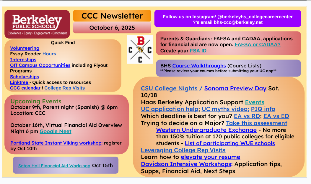 [BHS Etree] COLLEGE/CAREER: Newsletter #5 Oct 6th (Mon)