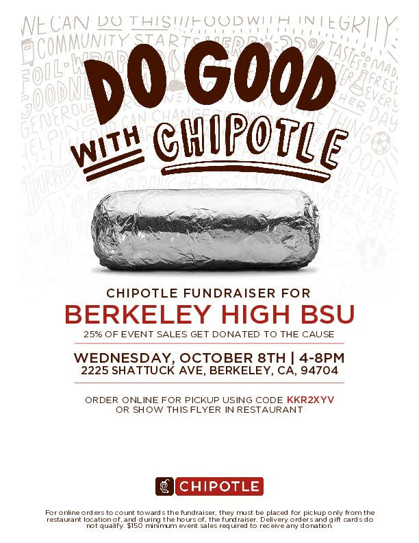 The Berkeley High Black Student Union is holding a Chipotle Fundraiser