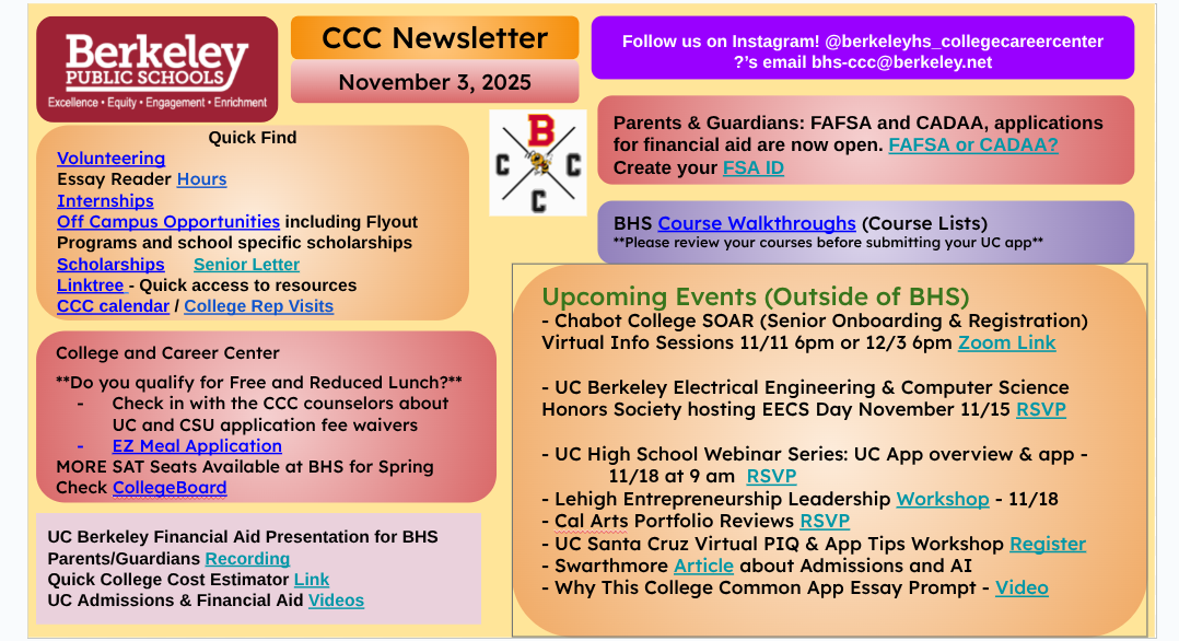 [BHS Etree] COLLEGE/CAREER: Newletter #9 Nov 5th (Wed)