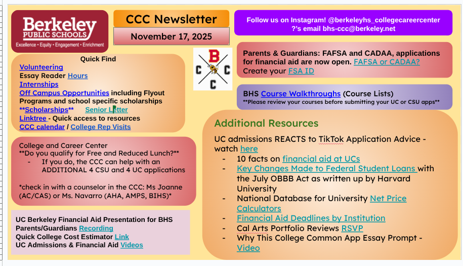 [BHS Etree] COLLEGE/CAREER: SENIORS: Newsletter #10, Nov 17