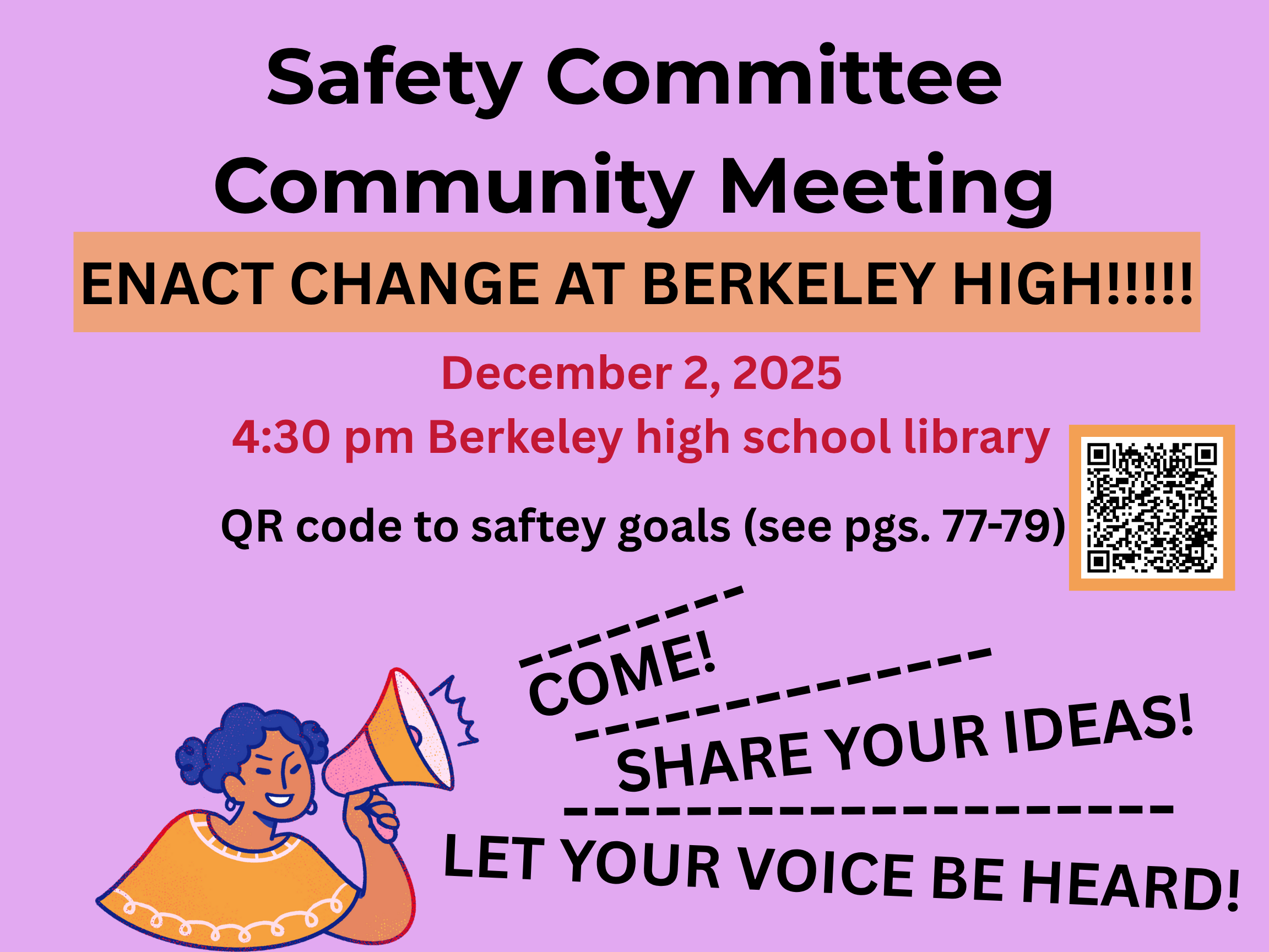 members to share ideas related to safety to inform the BHS Safety Plan.