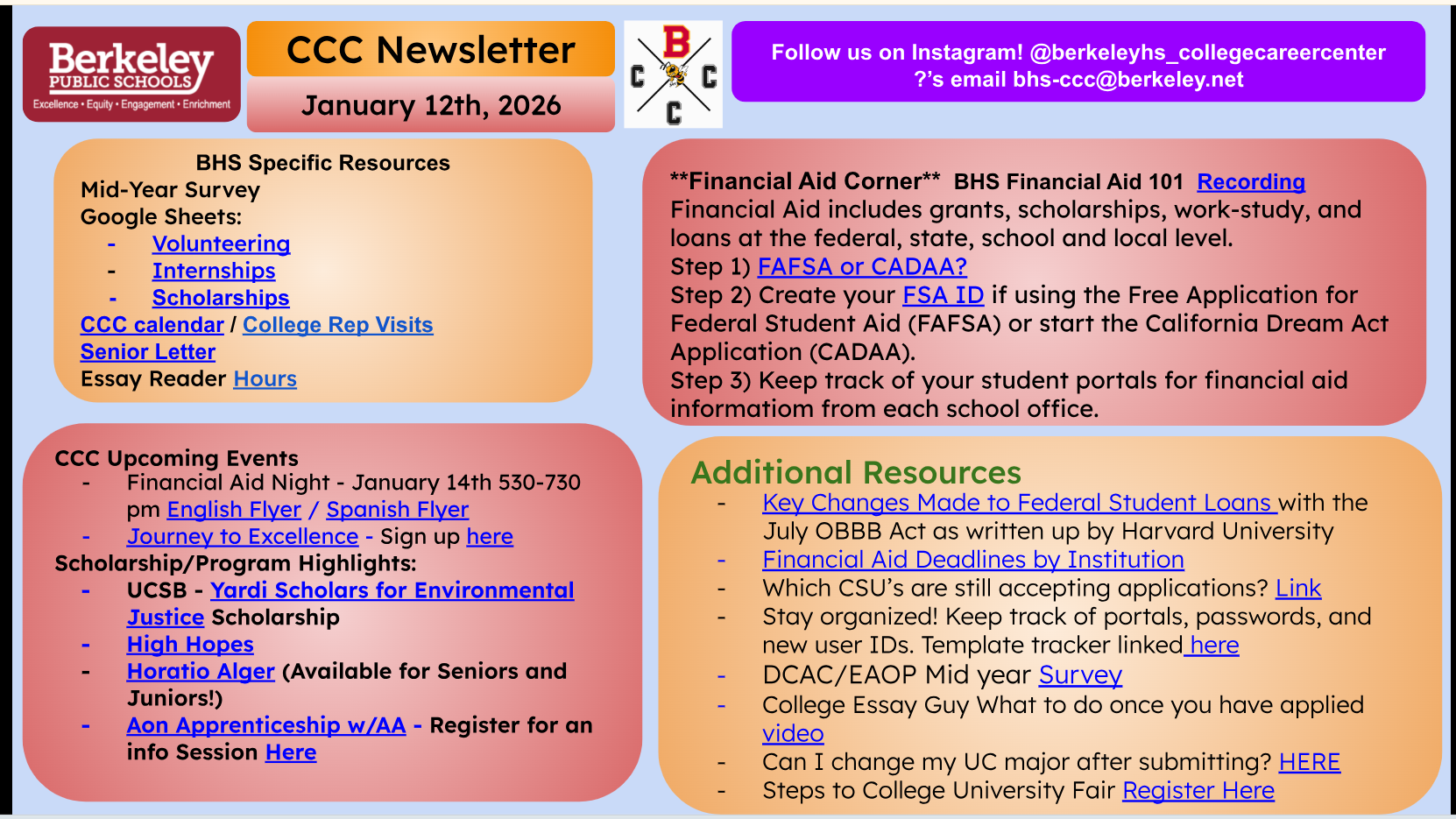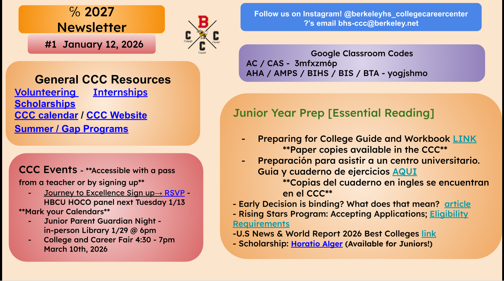 [BHS Etree] COLLEGE/CAREER: College/Career Newsletters for Seniors and Juniors - Jan 12 (Mon)