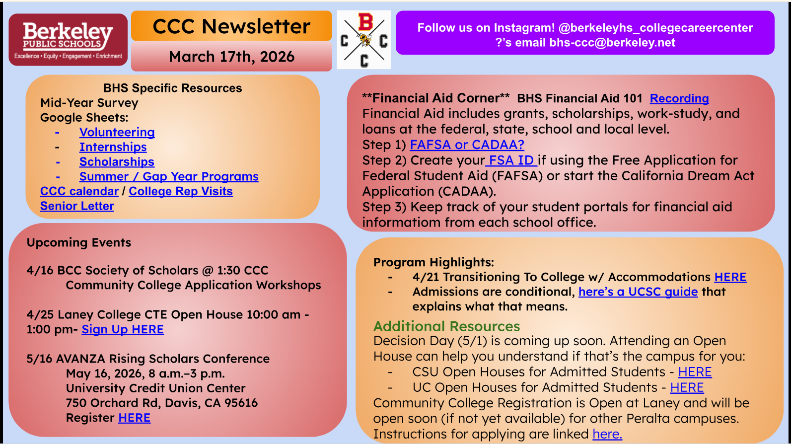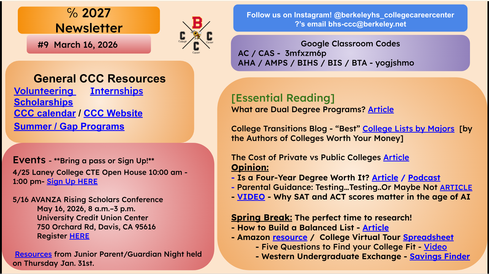[BHS Etree] COLLEGE/CAREER: Newsletters for Week of Mar 17-20