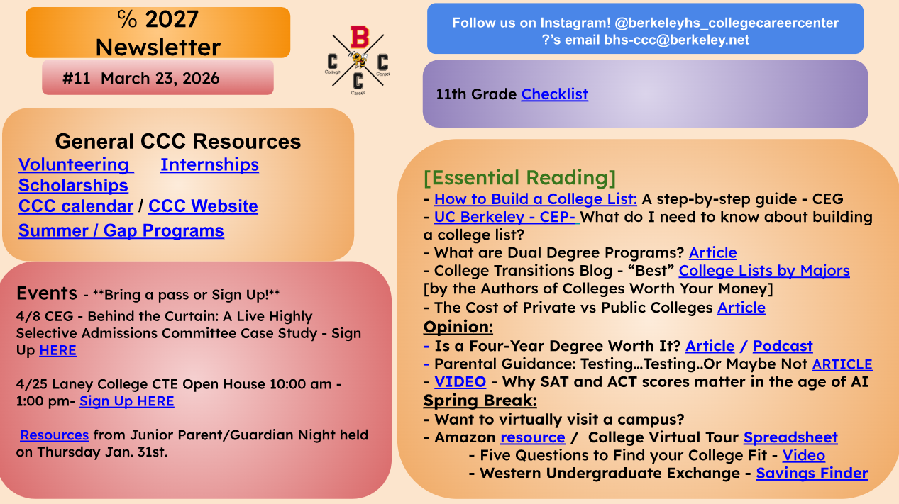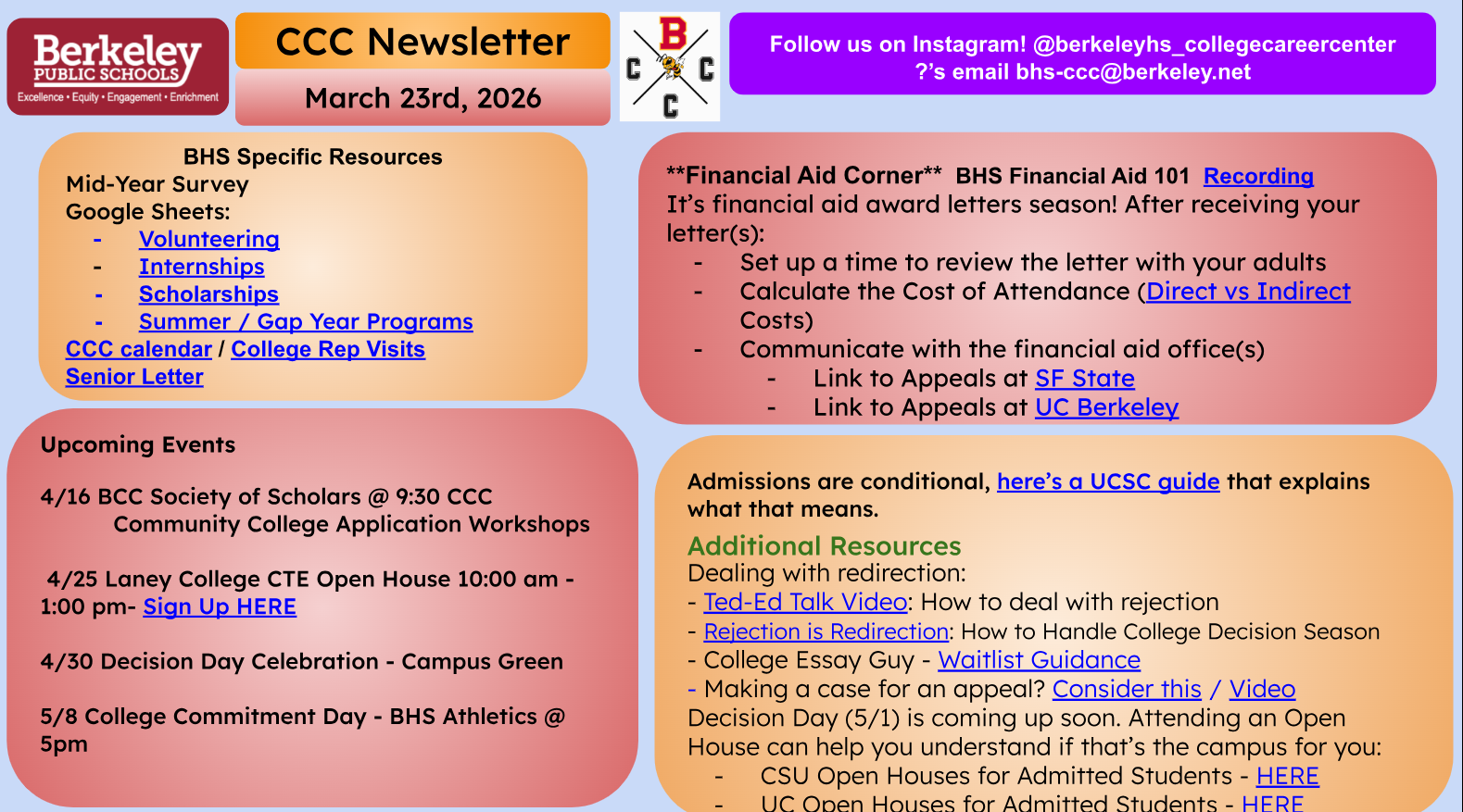 [BHS Etree] COLLEGE/CAREER: Newsletters for week of Mar 23-27