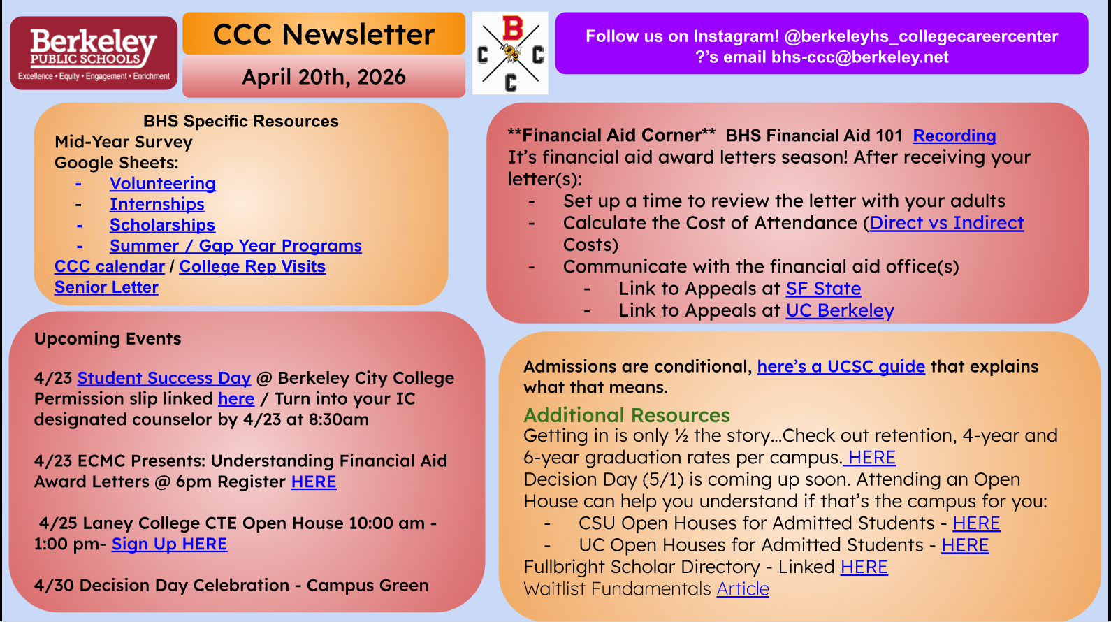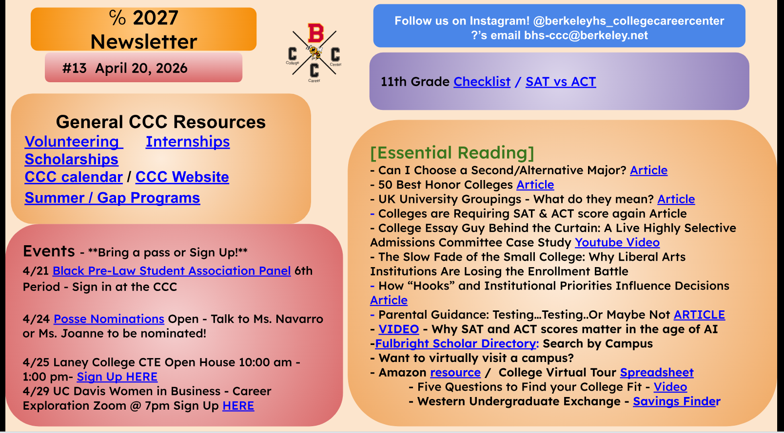 [BHS Etree] COLLEGE/CAREER: Newsletters for Seniors and Juniors April 20th -24th (Mon-Fri)